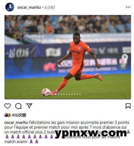 赛后小奥斯卡更新社媒,晒出比赛照纪念玉昆首秀,并配文写道:“首先要祝贺大家伙完成任务,在客场全取三分,而本场比赛也是我时隔近7个月,再次参加正式比赛,而且还上演梅开二度。如果没有上帝,我是无法取得这个成绩的。让我们未雨绸缪,为接下来的比赛做准备吧。”