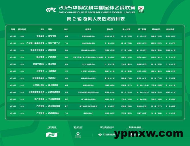 北京时间3月29日,中乙第2轮的裁判名单出炉,马腾执法广东德比广州蒲公英vs深圳二零二八。