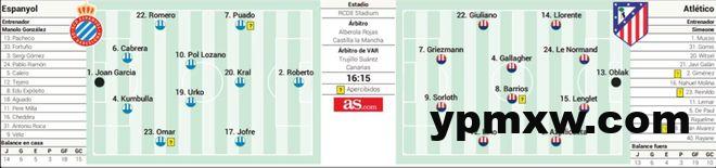 雷速体育3月29日讯 西甲联赛第29轮,西班牙人主场对阵马德里竞技。西媒《阿斯报》预测了本场比赛的首发阵容。