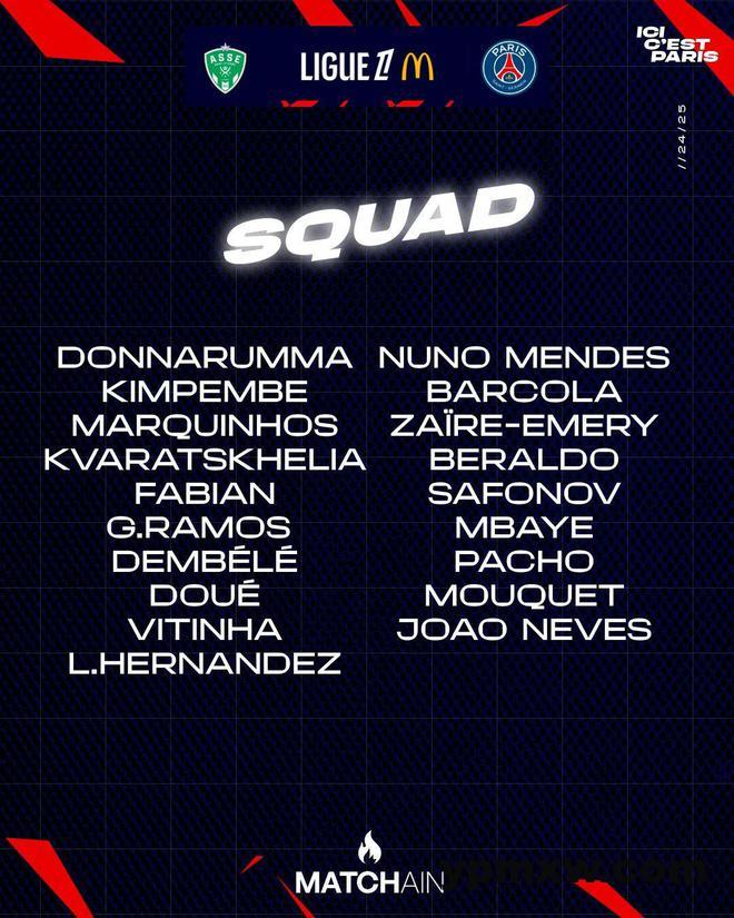 大巴黎 圣埃蒂安 法甲大名单公布 多纳鲁马、金彭贝、马尔基尼奥斯、克瓦拉茨赫利亚、法比安、贡萨洛·拉莫斯、登贝莱、杜埃、维蒂尼亚、卢卡斯·埃尔南德斯、努诺·门德斯、巴尔科拉、扎伊尔-埃梅里、贝拉尔多、萨福诺夫、姆巴耶、帕乔、穆凯、若昂·内维斯 KY体育新闻中心 KY体育·(中国)官方网站新闻中心 维尔贝克:生涯因为伤病流了不少眼泪,没想到能效力布莱顿五年 大巴黎比赛日回归,客战圣埃蒂安!