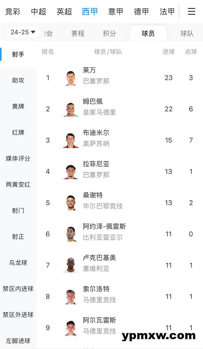 直播吧03月30日讯 西甲第29轮,皇马3-2战胜莱加内斯,姆巴佩梅开二度。 西甲射手榜方面,莱万23球领跑,姆巴佩22球第二。 KY体育新闻中心 KY体育·(中国)官方网站新闻中心 姆巴佩本赛季进球为球队带来18分西甲最多,莱万15分并列第二多 就砸今天,西甲积分榜再更新,皇马险胜追平巴塞罗那