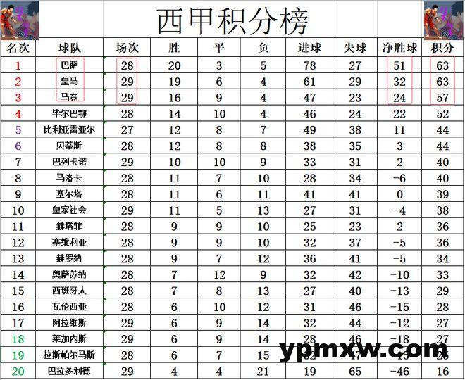 积分榜方面,皇马反逆转准绝杀赢球后,在多赛一场的情况再次追上巴萨,稳住了第2的位置,同时继续给巴萨压力。马竞无力击败保级弱旅西班牙人,已经是3轮不胜,他们现在已经落后巴萨,皇马6分,或许已经退出了争冠行列,除非之后巴萨,皇马齐齐掉链子,而马竞打出现在巴萨这么强势的连胜(这个剧本赛季中有过)。
