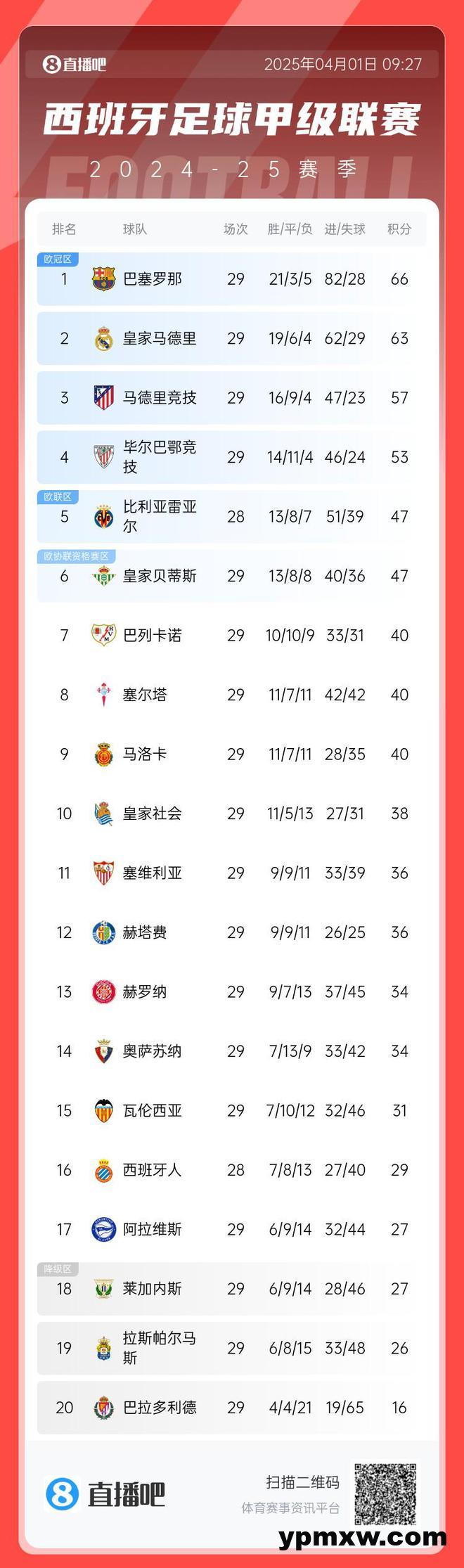 直播吧04月01日讯 西甲第29轮,贝蒂斯2-1击败塞维利亚,稳坐西甲第6的位置,甚至存在冲击第4的希望。
