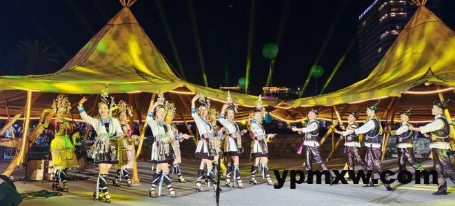与其说“村超”是一场激情澎湃的体育赛事,倒不如说“村超”拉开了一场别开生面的民族文化融合的舞台大幕。无人机编队特色表演配合灯光秀点亮夜空,苗族芦笙舞《卓给者》、歌舞联欢《侗家姑娘》《多耶》展现不一样的民俗魅力。