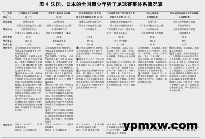 3.对国外的全国(地区)青少年男子足球赛事体系分析