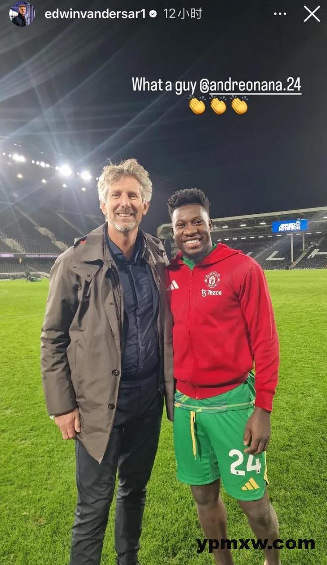 直播吧1月28日讯 本轮英超比赛中,曼联客场1-0小胜富勒姆。曾为两支球队效力的传奇门将范德萨现场观战。 赛后,范德萨晒出了和奥纳纳的合影,并称赞对方:多么出色的家伙。 在范德萨担任阿贾克斯CEO时,他和奥纳纳有过多年共事经历。 KY体育新闻中心 KY体育·(中国)官方网站新闻中心 费内巴切副主席:我们拒绝签拉什福德,因为队内已有相似球员 墨菲:凯莱赫今夏会离开利物浦,切尔西或纽卡对他是绝佳选择