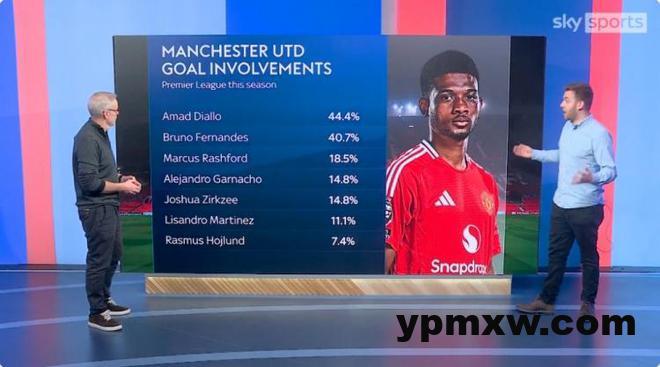 直播吧1月28日讯 天空体育统计了曼联球员本赛季英超参与进球的队内占比,并列出榜单,阿玛德44.4%居首,B费40.7%次席,霍伊伦仅7.4%。