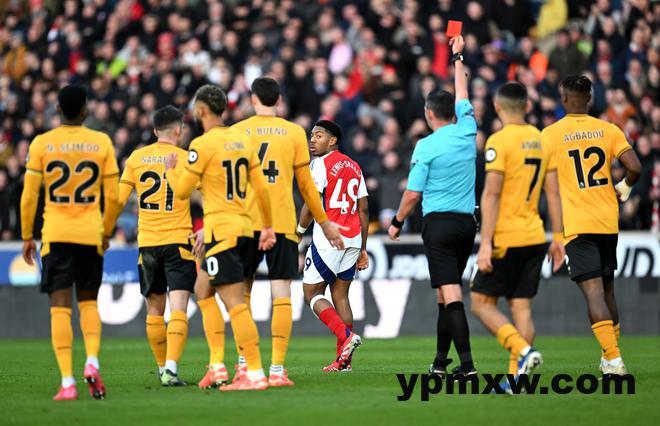 在2025年1月25日英超联赛阿森纳对阵狼队的比赛中,这位阿森纳球员因严重犯规被红牌罚下。