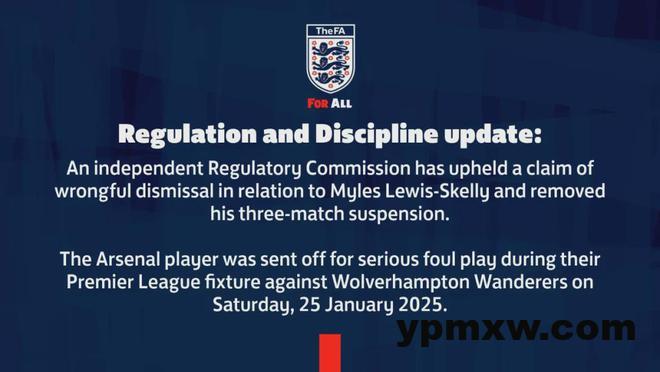 英足总官方宣布,阿森纳上诉成功,后卫斯凯利在对阵狼队时吃到的红牌被推翻,取消禁赛三场。