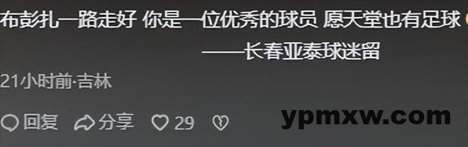 这个评论还是长春亚泰的球迷评论的,可见布彭扎的意外离世对足球界来说是多么大的损失。
