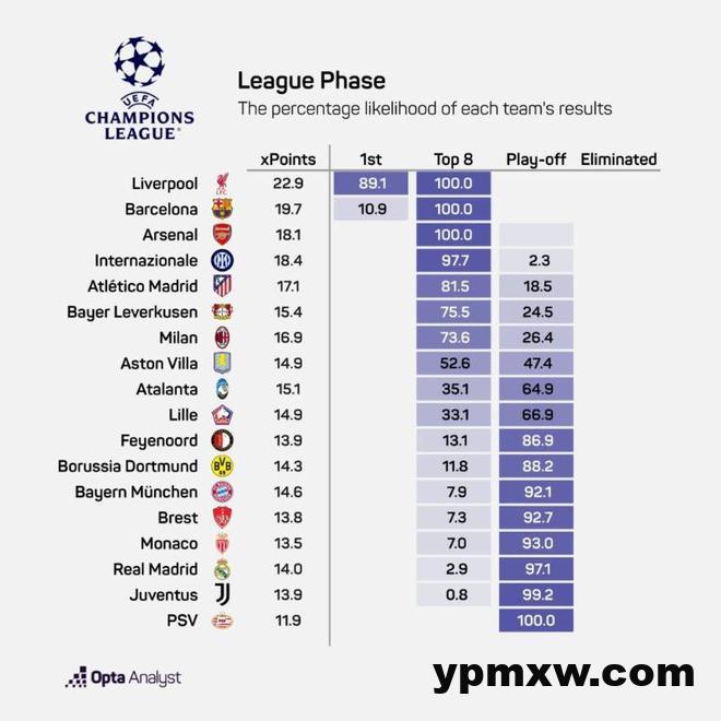 现在,只有利物浦与巴塞罗那锁定了前八名,阿森纳也基本锁定前八,跌出前八只有理论上微乎其微的可能性。