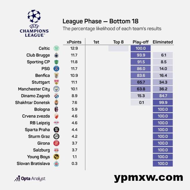 排名3-18名的16支球队已经至少锁定附加赛席位,不会存在在联赛阶段直接出局的可能性。