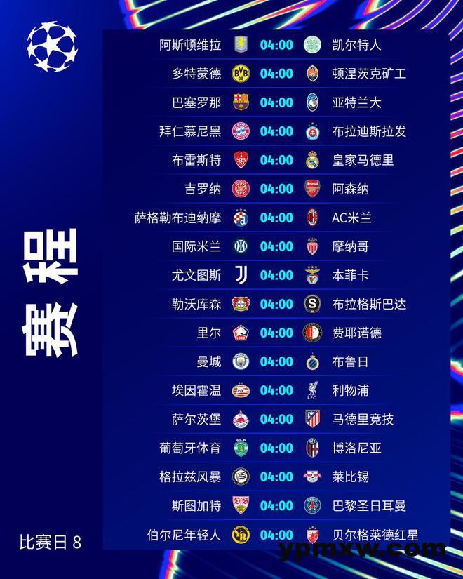 雷速体育1月29日讯 北京时间明天凌晨4点,24/25赛季欧冠联赛阶段末轮18场比赛同时打响。英超豪门曼城暂列第25,本轮只有取胜才能确保晋级附加赛,皇马、大巴黎、拜仁等球队悉数登场!雷速体育邀请您参与末轮焦点战截图预测。