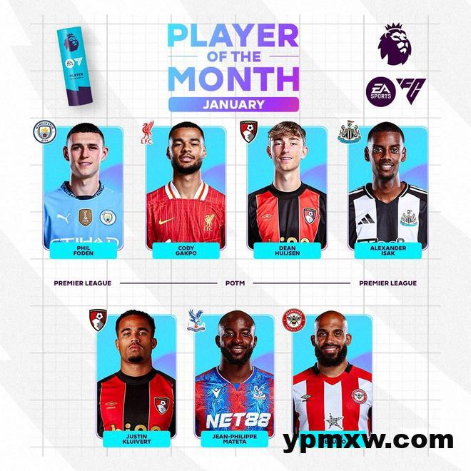 北京时间1月30日,英超官方公布了1月最佳球员的6位候选者,他们分别是曼城的福登、利物浦的加克波、伯恩茅斯的赫伊森、纽卡斯尔联的伊萨克、伯恩茅斯的尤斯廷-克鲁伊维特、水晶宫的马特塔以及布伦特福德的姆贝乌莫在列。