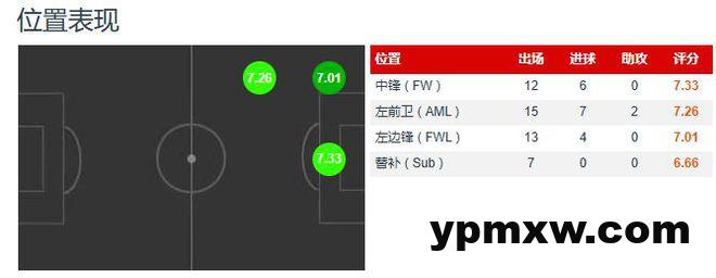 本赛季半程就刷新了这些数字,首发17次替补5次8球2助。