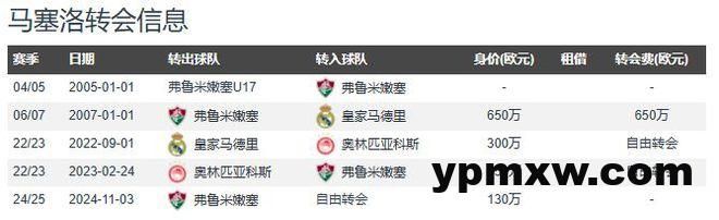 当年欧洲足坛转会标王是托雷斯和罗本,前者从马竞转会到利物浦,后者从切尔西加盟皇马,费用均为3600万欧元,可见马塞洛这650万欧元还是有含金量的。