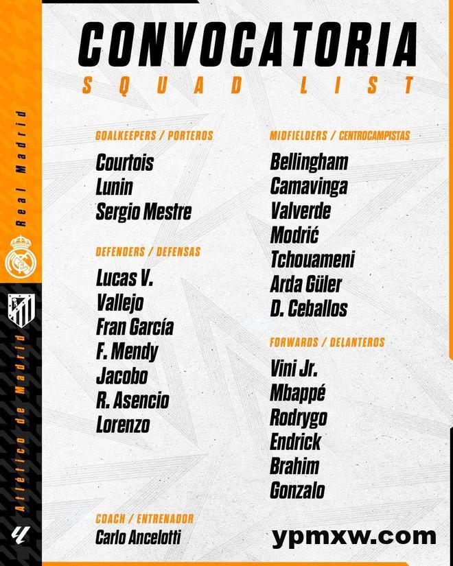 前锋:维尼修斯、姆巴佩、罗德里戈、恩德里克、卜拉欣-迪亚斯、贡萨洛-加西亚