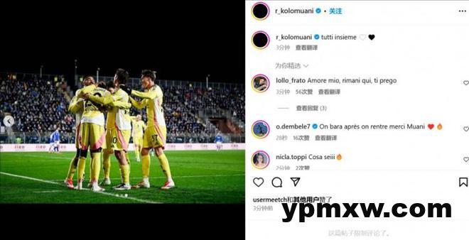 直播吧2月8日讯 在尤文2-1绝杀科莫后,梅开二度的穆阿尼在社交媒体上庆祝了胜利。 穆阿尼在社交媒体上上传了自己与队友的赛场庆祝照,他写道:“所有人一起。” 在冬窗加盟尤文后,穆阿尼已经在3场意甲攻入5粒进球。 KY体育新闻中心 KY体育·(中国)官方网站新闻中心 16胜5平!巴黎赛季前21场法甲比赛不败,队史第三次 足总杯:埃弗顿状态复苏,伯恩茅斯晋级无望?埃弗顿VS伯恩茅斯
