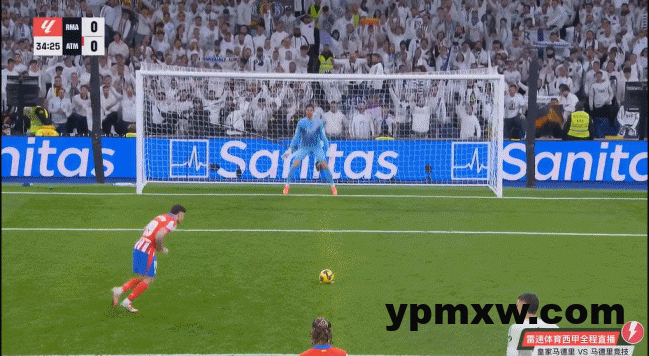 比赛第34分钟,阿尔瓦雷斯主罚并以勺子点球的方式命中,马竞1-0皇马,先下一城!
