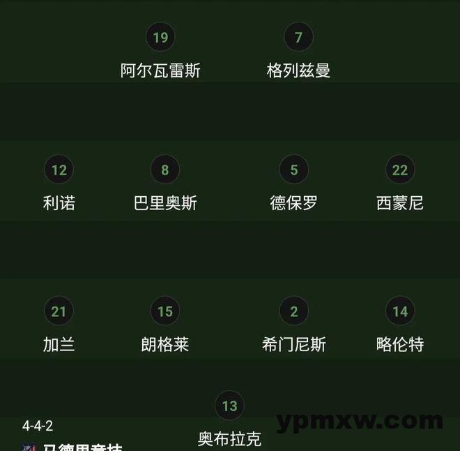 马竞排出了熟悉的4-4-2阵型,阿尔瓦雷斯、格列兹曼出任双箭头,利诺,巴里奥斯,德保罗,西蒙尼组成中场,加兰,朗格莱,希门尼斯,略伦特组成四后卫,奥布拉克把守大门!
