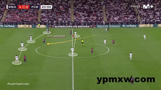 当卡萨多带球突破了皇马前场的两名球员来到中场附近后,他为莱万多夫斯基送出直塞,后者随即打破僵局。