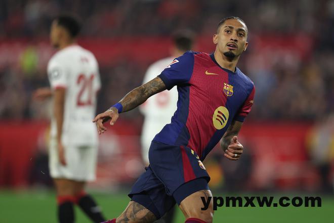 西甲第23轮客场挑战塞维利亚的比赛中,拉菲尼亚的进球帮助巴塞罗那取得3-1的领先。