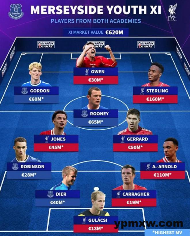 直播吧2月13日讯 利物浦将在本轮英超迎来同埃弗顿的默西赛德郡德比,《转会市场》也列出了两队历史最贵身价青训阵容。