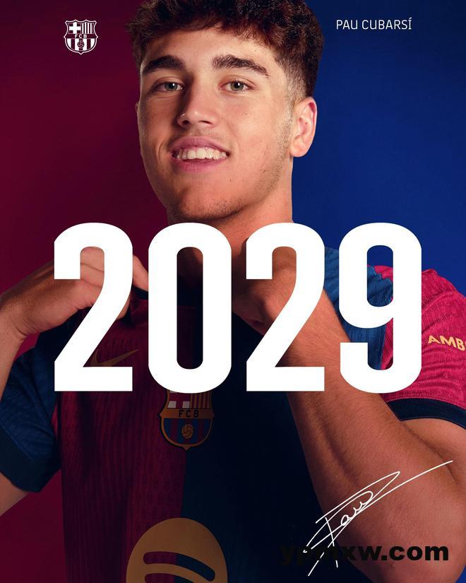 巴萨官方宣布,与小将库巴西续约至2029年。