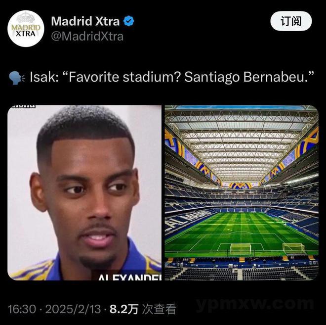 最近接受采访被问到最喜欢的球场——皇马圣地亚哥·伯纳乌。