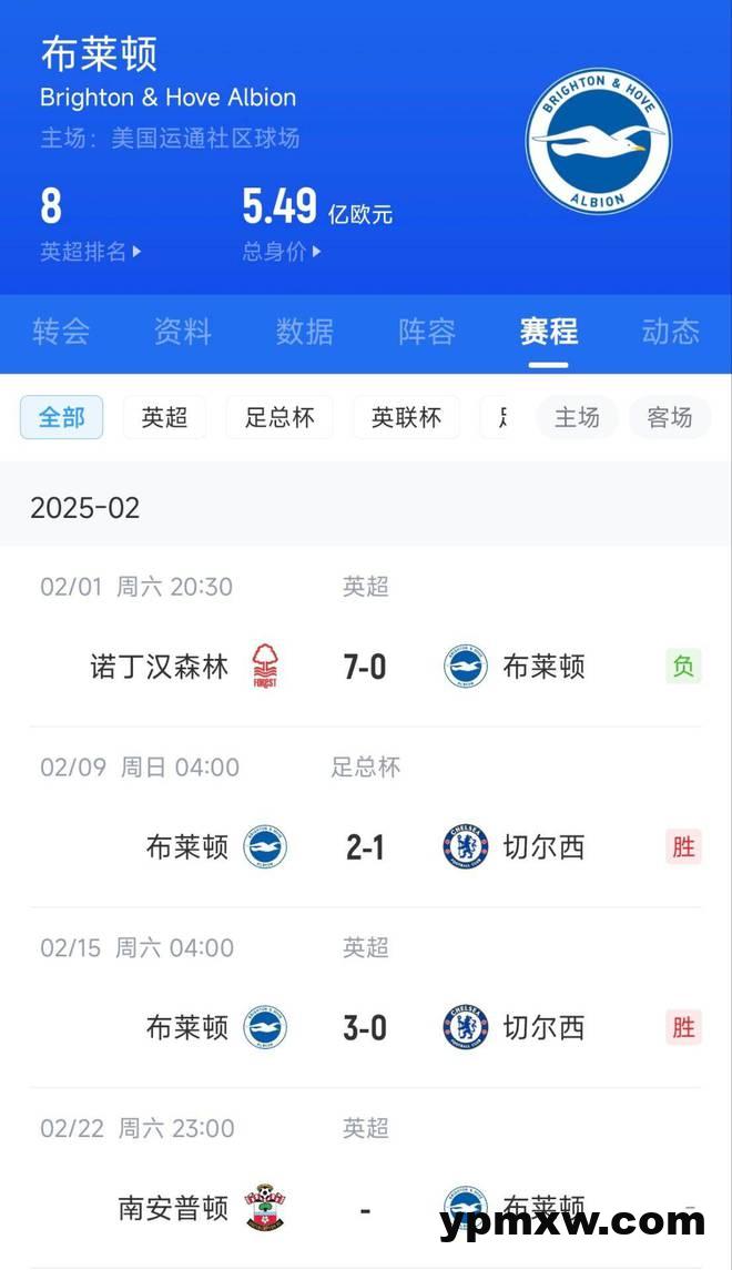 直播吧02月15日讯 英超第25轮切尔西0-3惨败给布莱顿,布莱顿实现6天内双杀切尔西。 而在两个星期前的第24轮英超,布莱顿才刚被诺丁汉森林打了个7-0,遭到极为惨痛的失利。不过惨败之后,布莱顿迅速调整,如今是切尔西接过了痛苦。 KY体育新闻中心 KY体育·(中国)官方网站新闻中心 阿里纳斯:本西不改变快船的进攻体系 防守端能带来球队要的一切 早知道|安东尼、霍华德入围名人堂候选名单