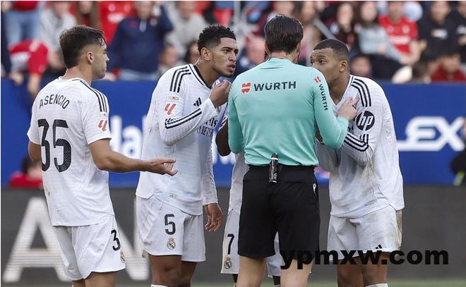刚在欧冠赛场绝杀曼城的皇马回到联赛立马遭遇到了争议判罚;姆巴佩突破被抱摔,维尼修斯禁区内被推倒,还制造对手手球;弗兰-加西亚直接被推出场外撞到广告牌,这些当值主裁判穆努埃拉都选择视而不见。安切洛蒂不满吹罚还吃到黄牌;而比赛第39分钟,贝林厄姆与穆努埃拉几句话之后却被红牌直接罚下!赛后主裁判在报告当中解释贝林染红原因是因为他骂人,安帅则表示爱徒说的是“滚开”;而非骂人的话术。