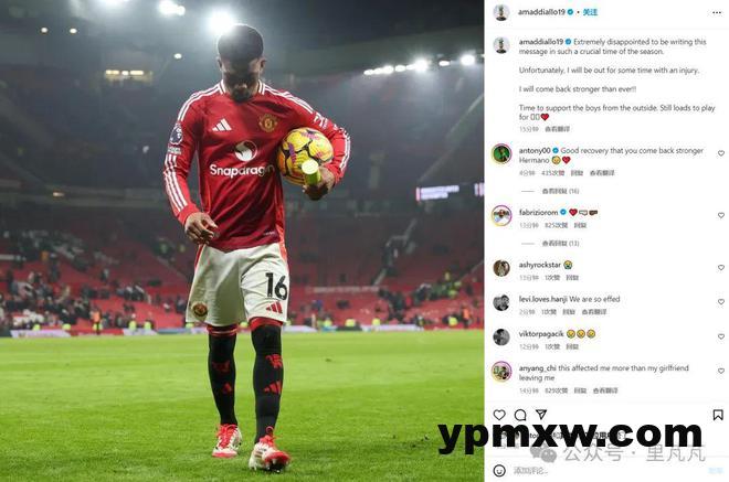 据多家权威体育媒体报道,阿玛德在日常高强度训练中遭遇脚踝韧带严重损伤,根据新闻报道,预计赛季报销了的。阿玛德通过个人社交媒体账号表达了对伤病的遗憾,同时坚定表示将积极配合康复治疗,以更强大的竞技状态回归赛场。曼联外租球员安东尼迅速对阿玛德送上鼓励支持。